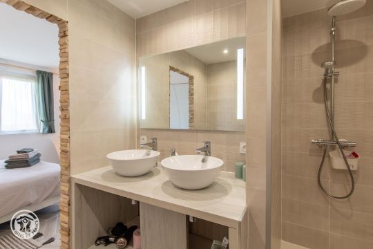 D'une surface de 33 m2 pour la totalité de la chambre, cette chambre est composée de 2 pièces qui peuvent accueillir une famille ou 2 couples d'amis.