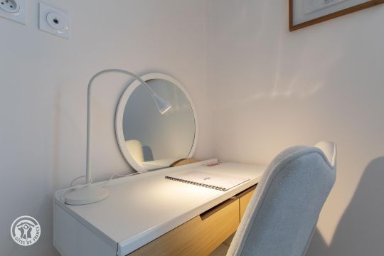 Des espaces de rangement, 2 petits bureaux avec fauteuils ainsi qu'une salle de bains avec douche et un WC séparé la complète.